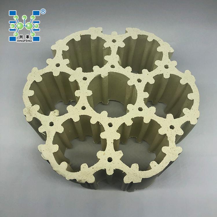 瓷质组合环是一种强度高、比表面积大、结构组合合理、操作比重轻、阻力小、吸水率低、空隙率大、耐强腐蚀性能好等优点的新型填料。