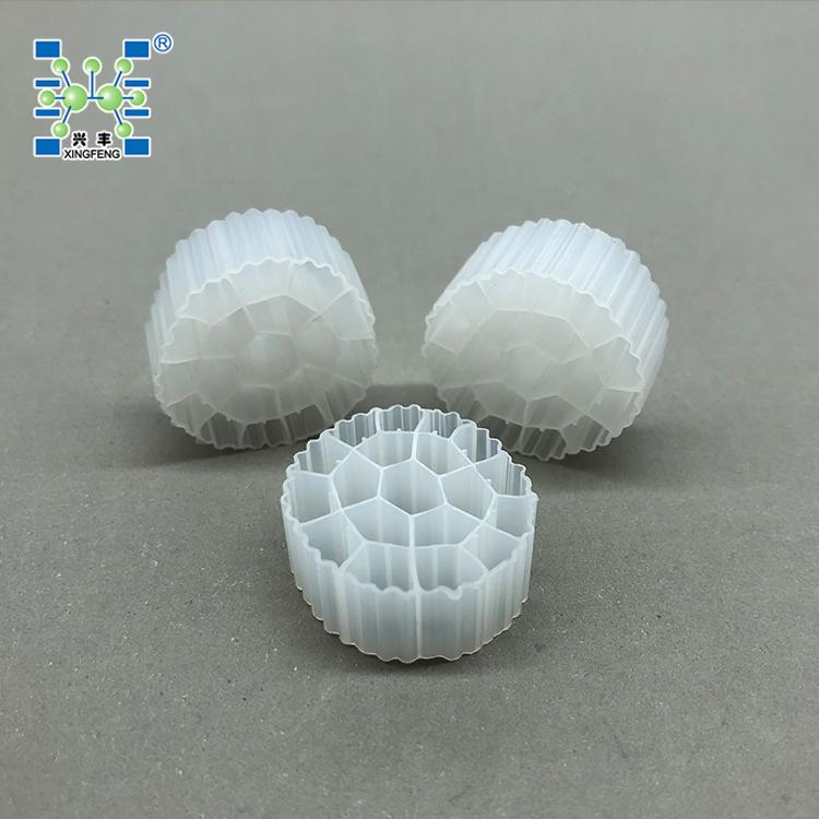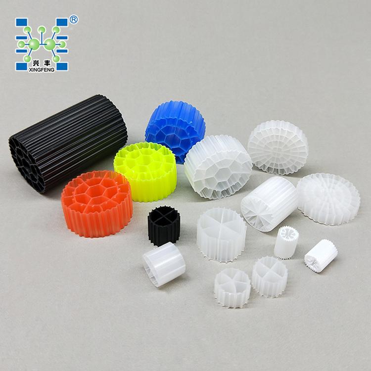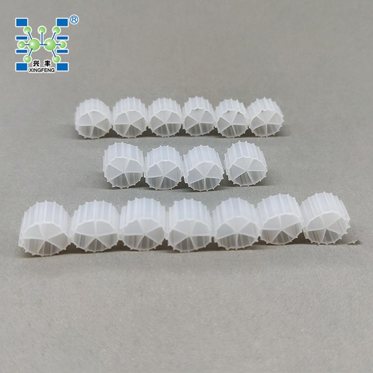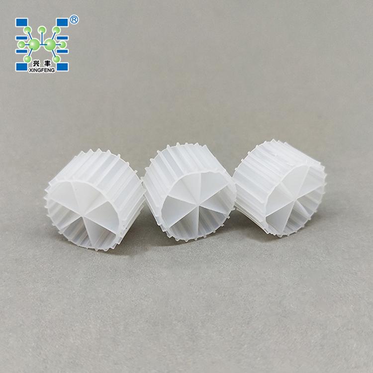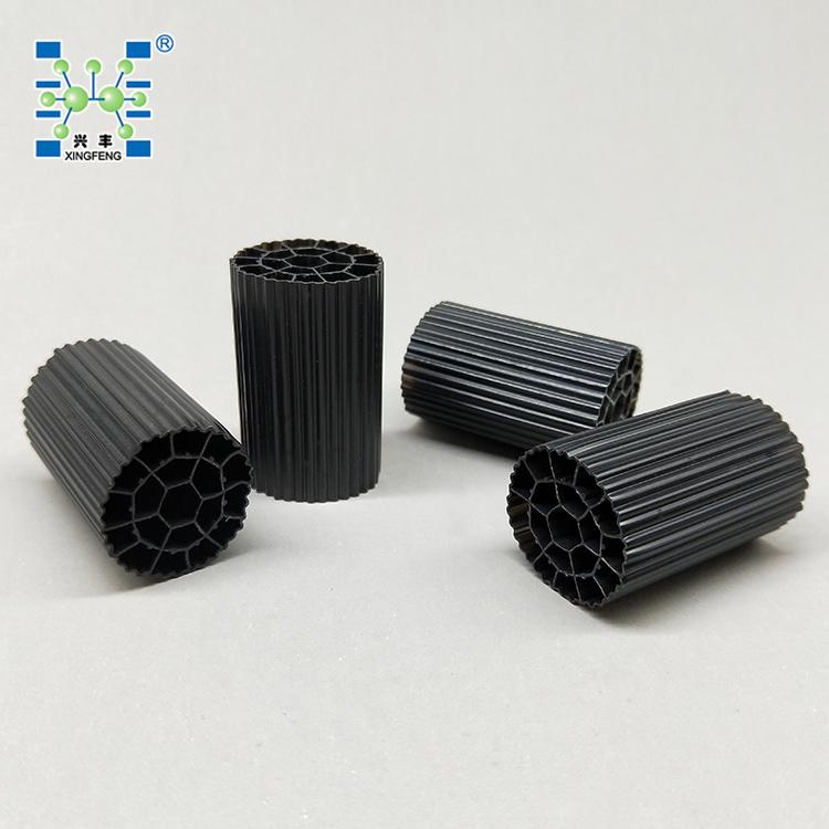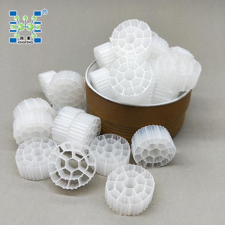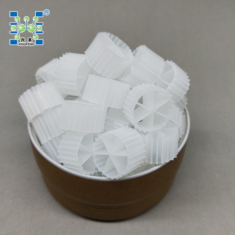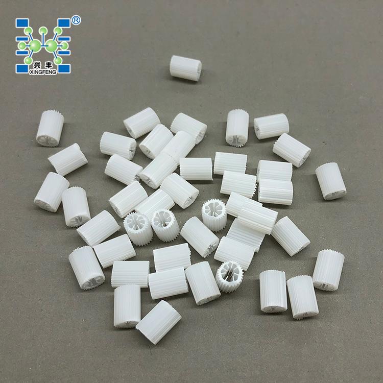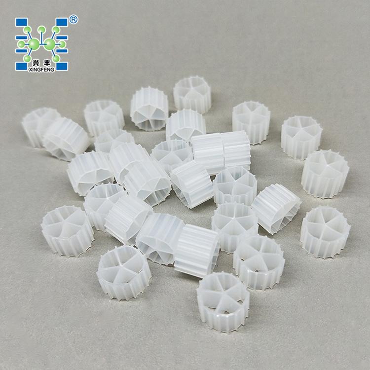 生物填料是一种新型生物活性载体,它采用科学配方,根据污水性质不同,在高分子材料中融合多种有利于微生物快速附着生长的微量元素,经过特殊工艺改性、构造而成,具有比表面积大、亲水性好、生物活性高、挂膜快、处理效果好、使用寿命长等优点。