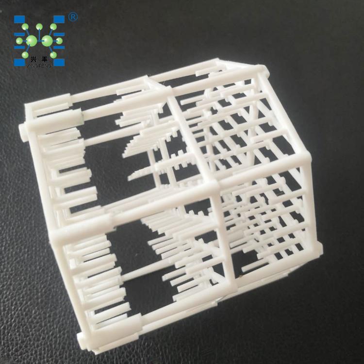 Q-PACK的流通结构利用滴尖和气体紊流来制造无数的液滴,在小限度阻碍气流通过的情况下,指数倍的增加了气液接触的面积。它的空隙率很高,可达到96.3%,而且它方向一致的空间网络结构使得细小的固体颗粒可以顺利通过而不至于堵塞其中。这些洗涤效率,气体通过能力和抗堵塞能力的优势都是其他填料塔无法与之匹敌的