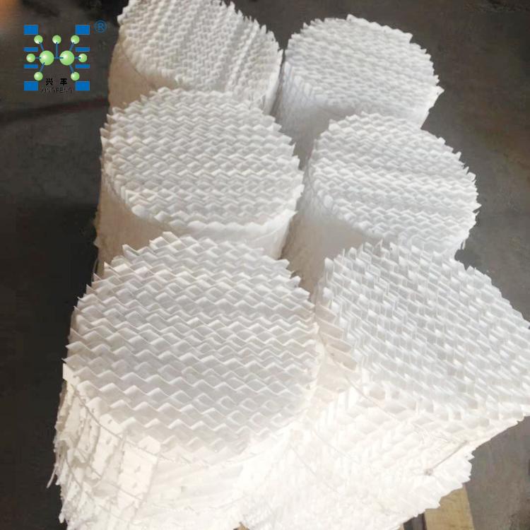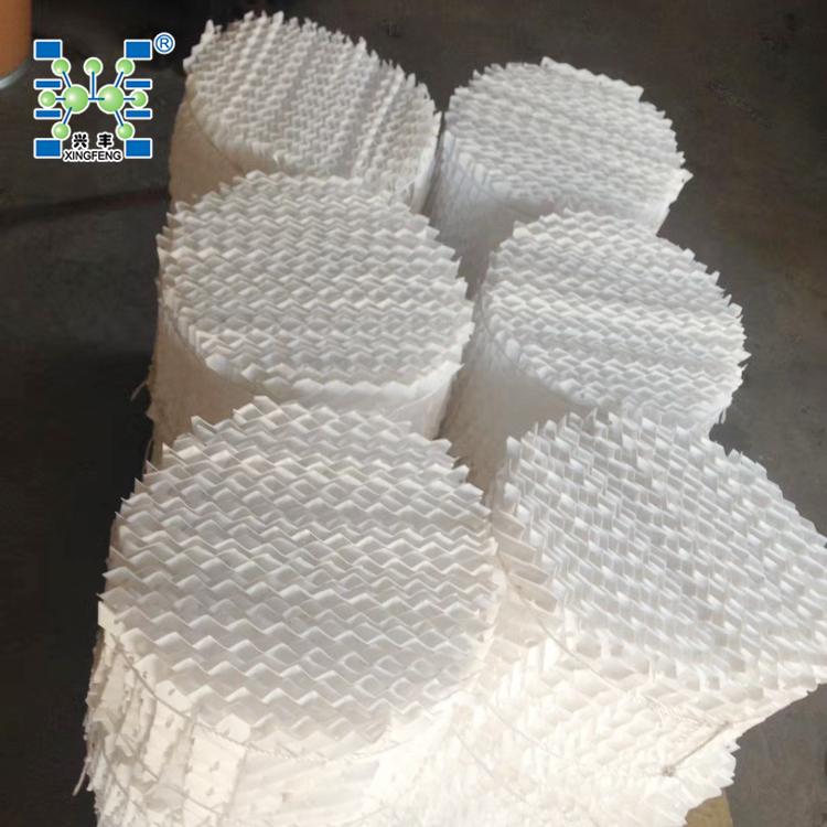 塑料孔板波纹填料应用:广泛用于吸收和解析过程, 在气体净化、气体溶液制备、废气交换及换热过程 应用***为广泛,其耐温150℃ 。塑料孔板波纹填料 的材质可有多种,如聚乙烯(PE)、聚丙烯(PP)、增强聚丙烯(RPP)、聚氯乙烯(PVC)、氯化聚氯乙烯(CPVC)、及聚偏氟乙烯(PVDF) , 可由用户选订。