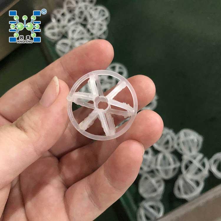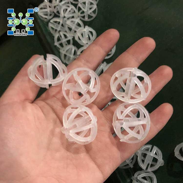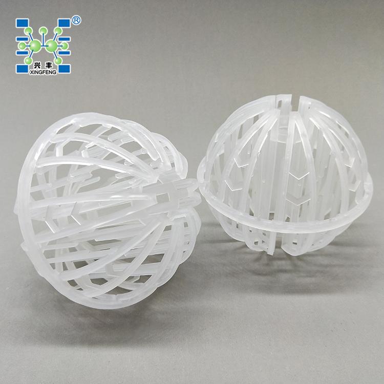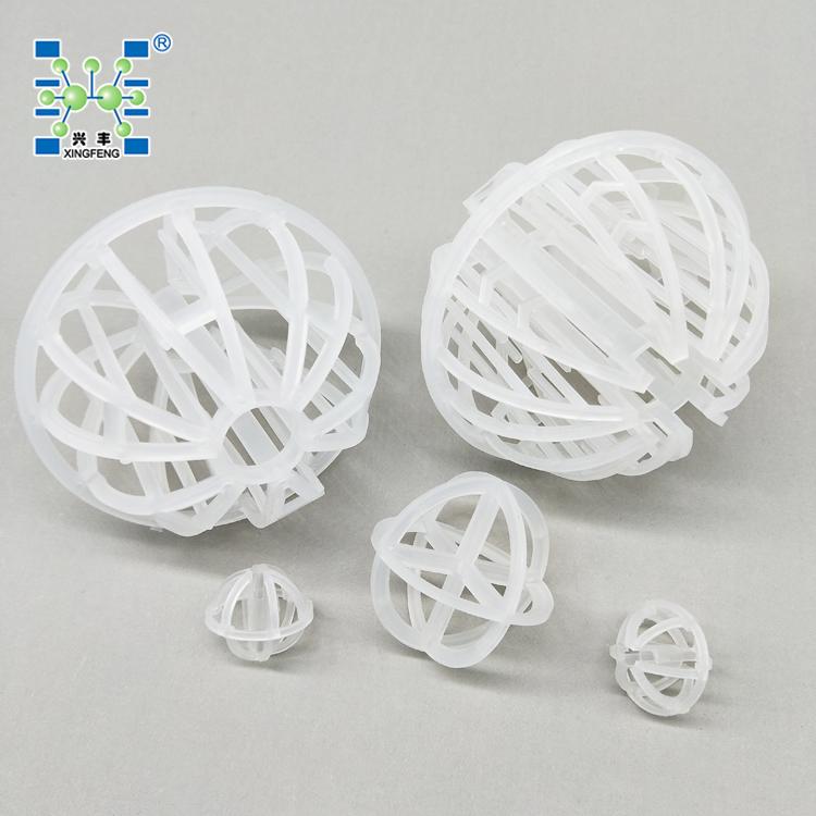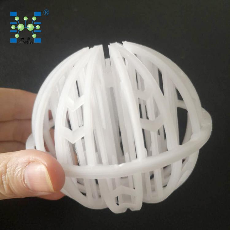塑料环保球采用聚丙乙烯塑料制成球状,在球中部沿整个周长有一道加固环环的上下各有十二片球瓣,沿中心轴呈放射形布置,适用于二氯化碳脱气塔,接触反应塔等装置。环保球耐腐蚀性能好、空隙大、通量大、阻力小、能耗低、且重量轻、易装卸、可重复使用、操作费用低等特点。