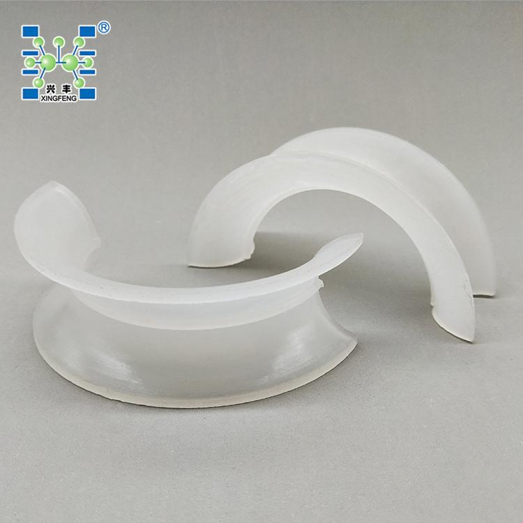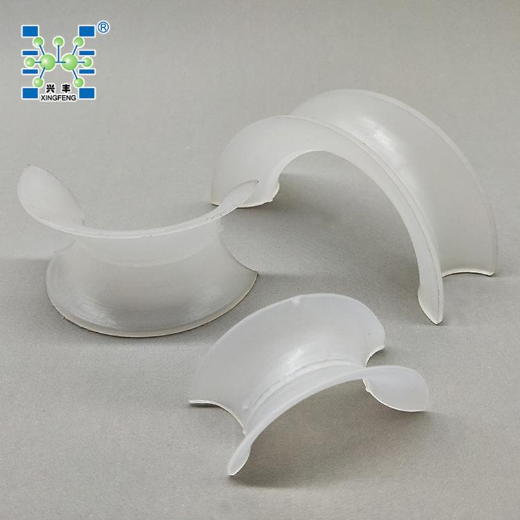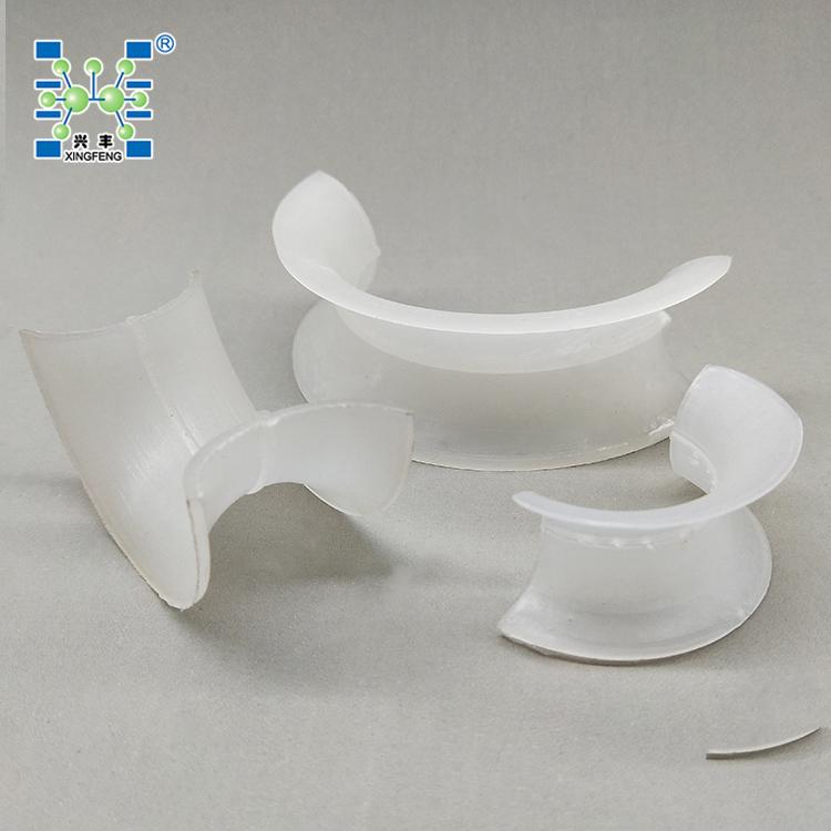 塑料矩鞍环填料的平滑弧形侧面在填料床层内,增加了填料间接触的空隙,塑料矩鞍环填料更有利于气体和液体在填料层中的流动和扩散,具有压降低,传质效率高等特点.