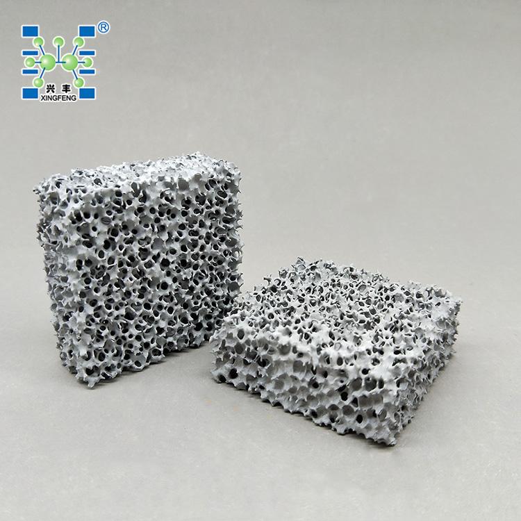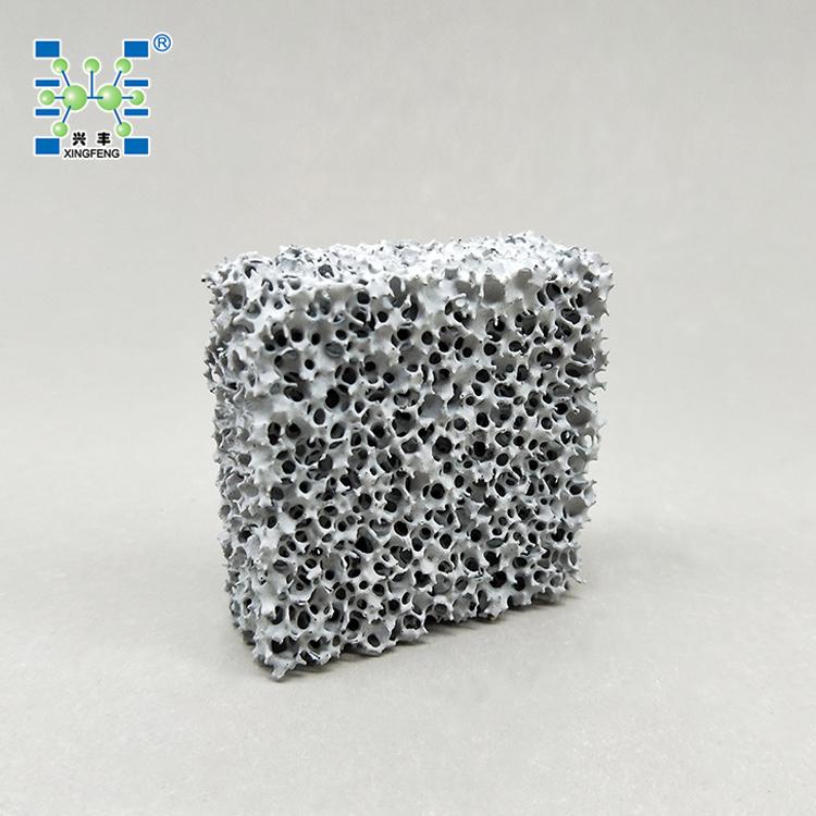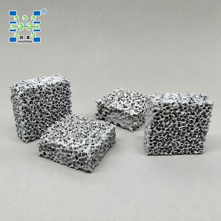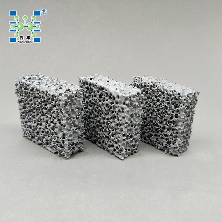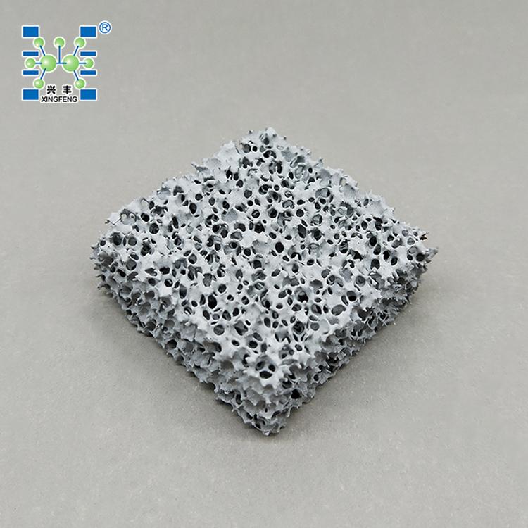 泡沫陶瓷过滤片具有重量轻,强度高,比表面积大,通孔率高,耐腐蚀,抗高温冲击力强等特点