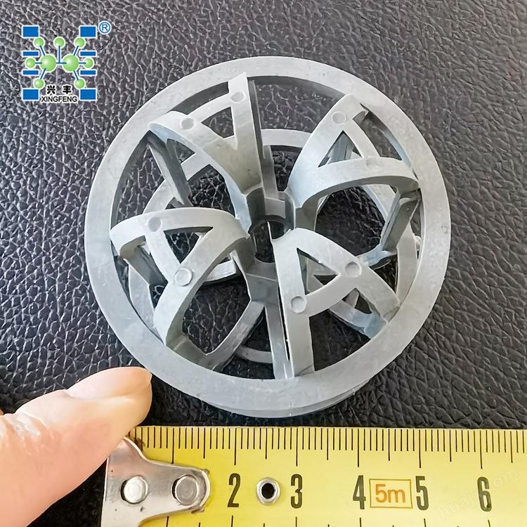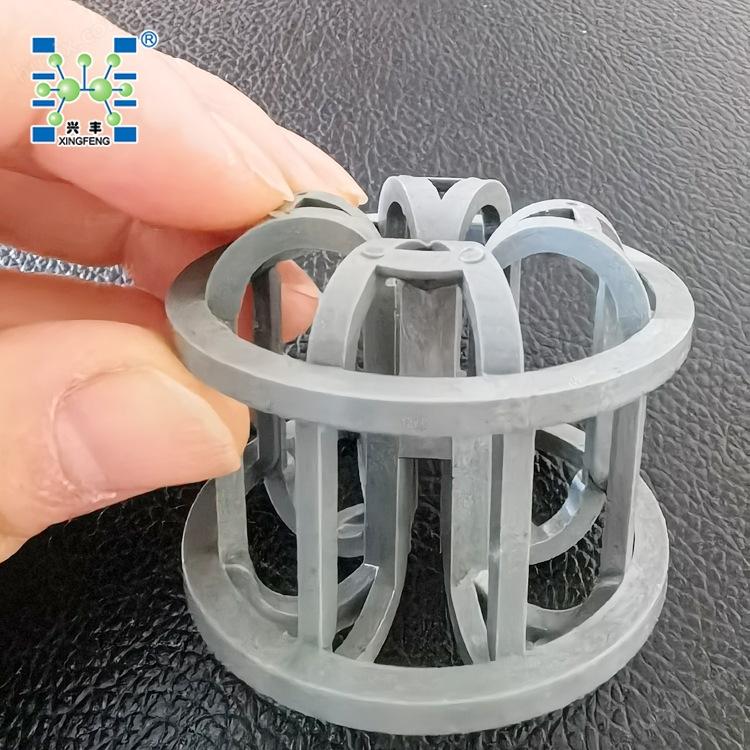 灯笼环CPVC材质(氯化聚氯乙烯)填料具有耐60-90℃以上热碱、氯气和次氯碱的腐蚀的能力,其结构空隙均匀,具有流体阻力小、压降小、流量大、堆比重小、气液分布接触良好、沟流和壁流趋势小等优点,从而传质性能优良的效果,具有很强的应用价值。