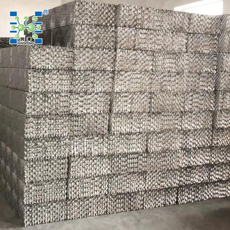 金属孔板波纹填料是在金属薄板表面打孔、轧制小纹、大波纹***后组装而成,具有阻力小气液分布均匀,效率高,通量大,放大效应不明显等特点,应用于负压,常压和加压操作。用金属孔板波纹填料改造板式塔效果尤为明显。加工填料的塔径范围为φ150mm-12000mm以上。